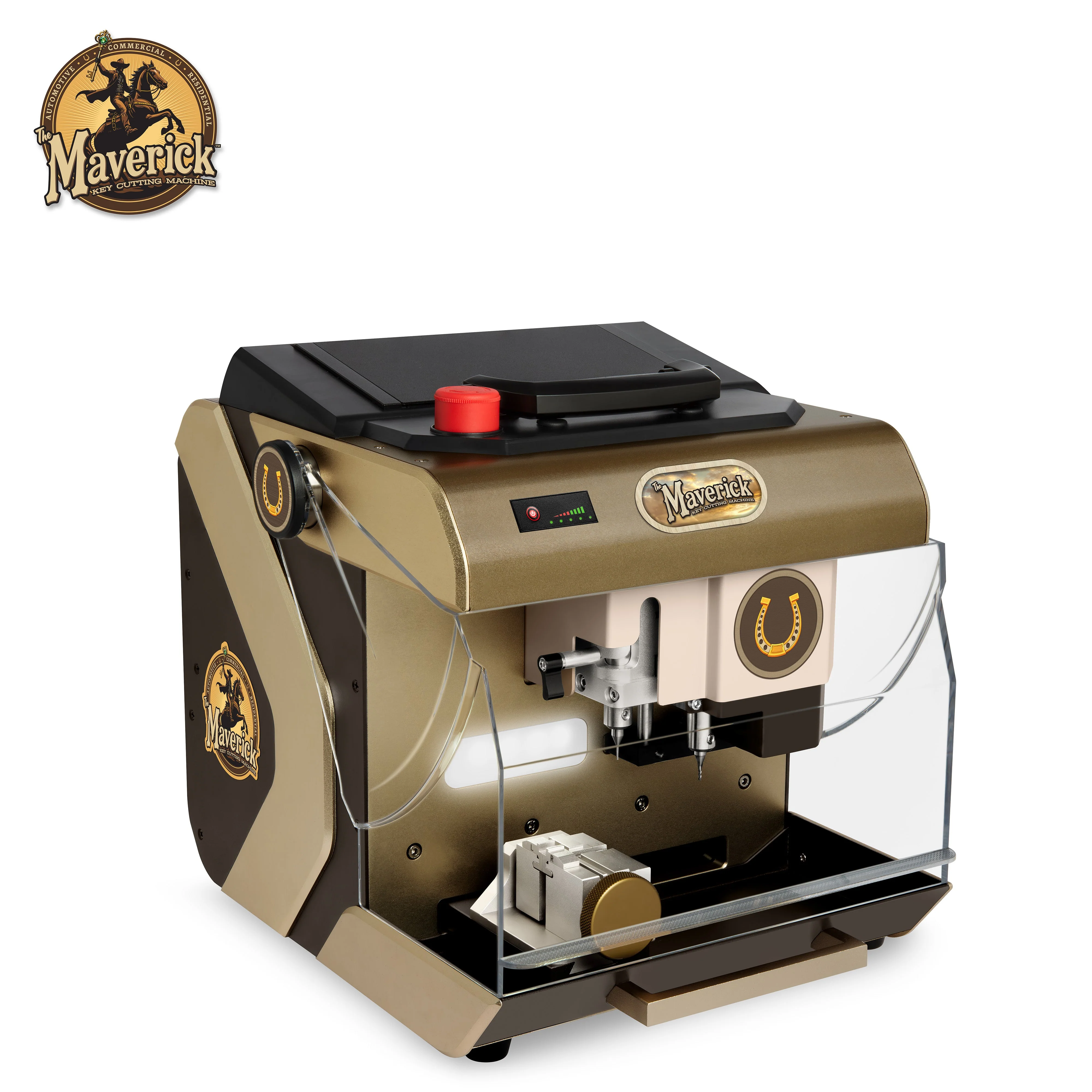 The Maverick™ is an affordable, reliable key cutting machine built for locksmiths who need a dependable backup or an entry-level option. Compact and durable, it offers precision cutting performance backed by U.S.-based technical support and warranty services. Unlike other machines in its price range, The Maverick™ can decode, originate, and duplicate across a wide range of commercial, residential, automotive, and motorcycle keys.